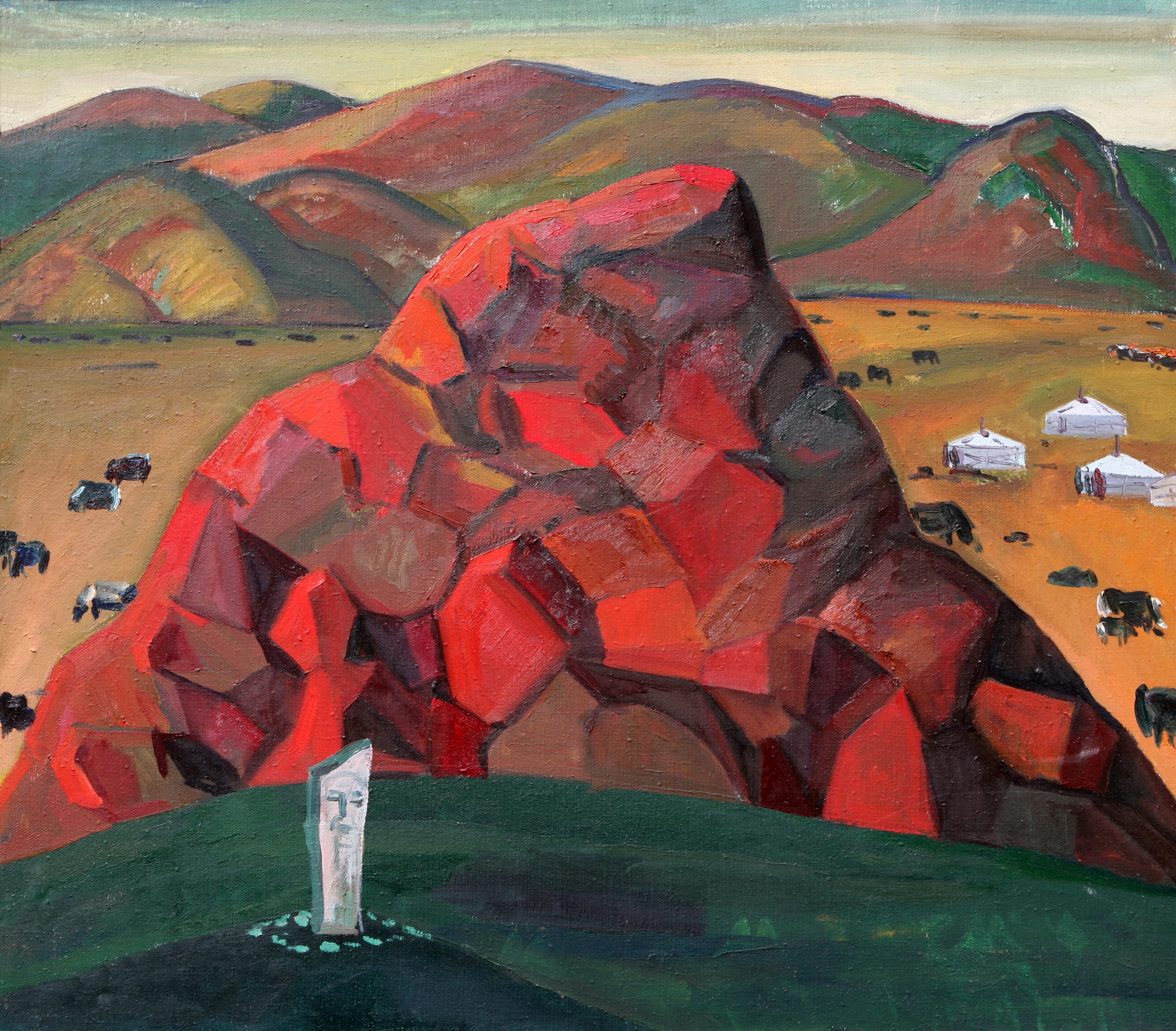 Духом братского единения монгольского и калмыцкого народов проникнута живопись: «На земле предков» В. Ургадулова, «Семья монгола», «Ворота в Гоби» А. Поваева, приподнятого эмоционального строя монгольские пейзажи О. Кикеева. Далекая прародина одухотворена великолепной живописной мощью его полотен «Убса- Нур» и «Воспоминание о Хиргис-нуре», затаенной печалью «Вечерней песни. Джунгария», монументальной выразительностью «Красной горы в Улан-гоме». В тематической перекличке с монгольскими сюжетами калмыцкий пейзаж «Курган в степи» О. Кикеева несет «надвременное» ощущение истории, ее древних истоков в переосмыслении современником. В суровом дыхании Природы, взаимообусловленной ее связи с человеком, чутко передано близкое по духу, трудноуловимое словами, единое в истоках мироощущение народов [Батырева, Богородская ].